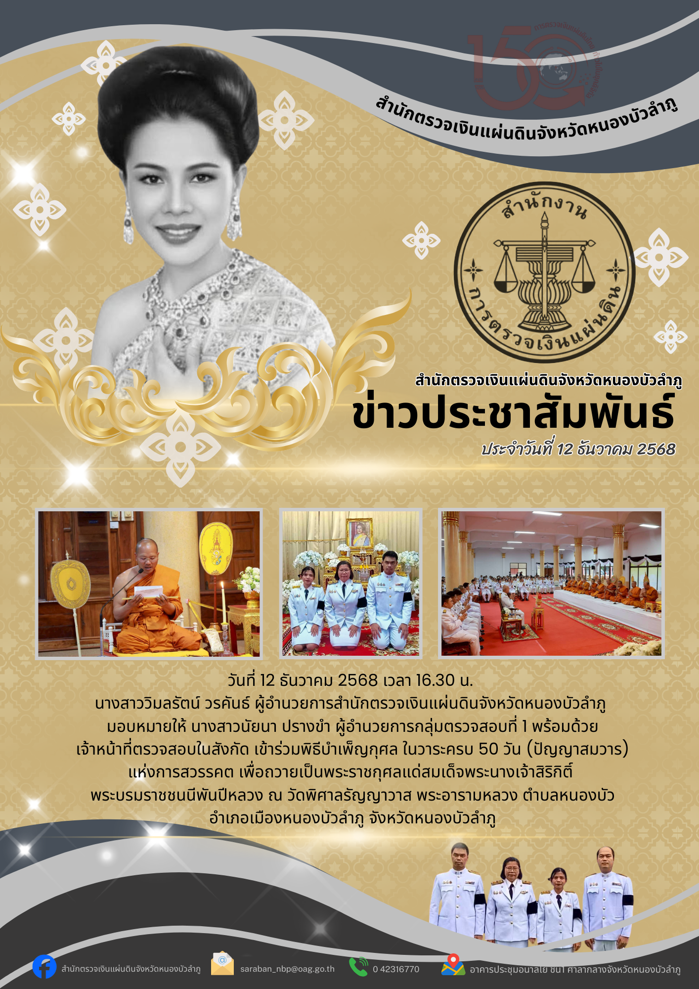 วาระครบ 50 วัน (ปัญญาสมวาร)กิจกรรมประชาสัมพันธ์, ข่าวที่น่าสนใจ, ข่าวประชาสัมพันธ์, งานราชพิธี/รัฐพิธี, ภาพกิจกรรมธันวาคม 13, 2025ธันวาคม 13, 2025 Post Views: 233